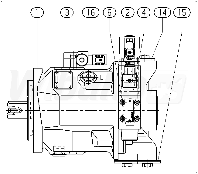 Pompa tłokowa osiowa o zmiennej objętości roboczej A10VS, obieg otwarty, ciśnienie nominalne 280 bar, ciśnienie maksymalne 350 bar. Seria 31. Wielkość nominalna 28 cm3.