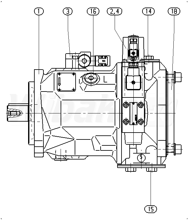 Pompa tłokowa osiowa o zmiennej objętości roboczej A10VS, obieg otwarty, ciśnienie nominalne 280 bar, ciśnienie maksymalne 350 bar. Seria 31. Wielkość nominalna 71 cm3.