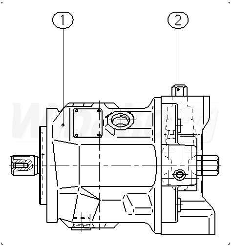 Pompa tłokowa osiowa o zmiennej objętości roboczej A10VS, obieg otwarty, ciśnienie nominalne 280 bar, ciśnienie maksymalne 350 bar. Seria 31. Wielkość nominalna 45 cm3. Ciśnieniowy sterownik hydrauliczny z kontrolą przepływu, porty X-T otwarte. Wał napędowy ANSI B92.1a. Kołnierz ISO 3019-1 (SAE) 2-otwory. SAE kołnierze zgodne z J518 Porty robocze UNF. Gwint mocujący UNF; przystosowany do montażu dodatkowej pompy. Bez napędu przelotowego.