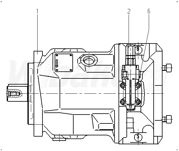 Pompa tłokowa osiowa o zmiennej objętości roboczej A10VS, obieg otwarty, ciśnienie nominalne 280 bar, ciśnienie maksymalne 350 bar. Seria 31. Wielkość nominalna 45 cm3. Ciśnieniowy sterownik hydrauliczny z kontrolą przepływu, porty X-T zaślepione, z zaworem płuczącym.
