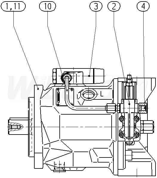 Pompa tłokowa osiowa o zmiennej objętości roboczej A10VS, obieg otwarty, ciśnienie nominalne 280 bar, ciśnienie maksymalne 350 bar. Seria 31. Wielkość nominalna 71 cm3. Ciśnieniowo przepływowy regulator mocy. Uszczelnienia: FKM (kauczuk fluorowy).