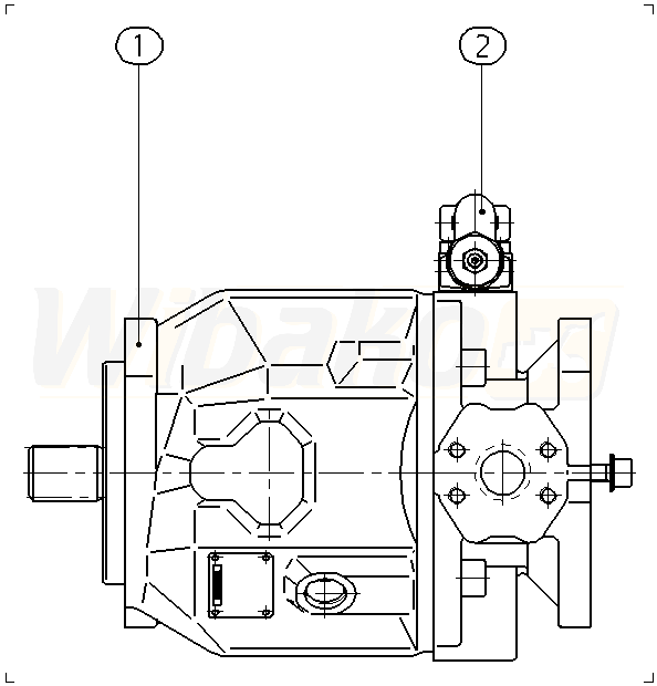 Pompa tłokowa osiowa o zmiennej objętości roboczej A10VS, obieg otwarty, ciśnienie nominalne 280 bar, ciśnienie maksymalne 350 bar. Seria 31. Wielkość nominalna 71 cm3. Ciśnieniowy sterownik hydrauliczny. Uszczelnienia: FKM (kauczuk fluorowy). Wał napędowy ANSI B92.1a. Kołnierz ISO 3019-1 (SAE) 2-otwory. SAE kołnierze zgodne z J518 Porty robocze UNF. Gwint mocujący UNF; przystosowany do montażu dodatkowej pompy.