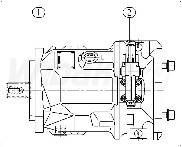 Pompa tłokowa osiowa o zmiennej objętości roboczej A10VS, obieg otwarty, ciśnienie nominalne 280 bar, ciśnienie maksymalne 350 bar. Seria 31. Wielkość nominalna 71 cm3. Ciśnieniowy sterownik hydrauliczny. Wał napędowy ANSI B92.1a dla wyższego momentu obrotowego. Kołnierz ISO 3019-1 (SAE) 2-otwory. SAE kołnierze zgodne z J518 Porty robocze UNF. Gwint mocujący UNF; przystosowany do montażu dodatkowej pompy. Napęd przelotowy. Kołnierz ISO 3019-1 101-2 (B) . Piasta na wał 7/8 in 13T 16/32DP.