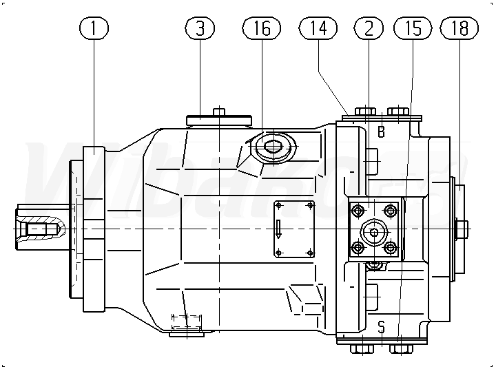 Pompa tłokowa osiowa o zmiennej objętości roboczej , obieg otwarty, ciśnienie nominalne 280 bar, ciśnienie maksymalne 350 bar. Seria 31. Wysokoobrotowa wersja. Wielkość nominalna 10 cm3.