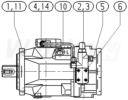 Pompa tłokowa osiowa o zmiennej objętości roboczej A10VS, obieg otwarty, ciśnienie nominalne 280 bar, ciśnienie maksymalne 350 bar. Seria 31. Wielkość nominalna 140 cm3. Ciśnieniowo przepływowy regulator mocy. Uszczelnienia: FKM (kauczuk fluorowy).