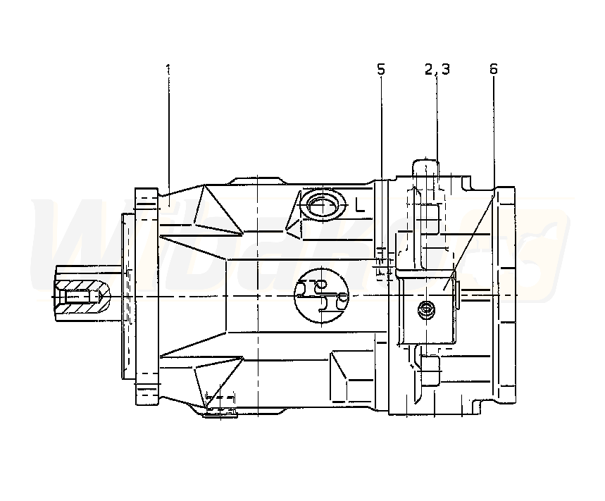 Pompa tłokowa osiowa o zmiennej objętości roboczej A10VS, obieg otwarty, ciśnienie nominalne 280 bar, ciśnienie maksymalne 350 bar. Seria 31. Wielkość nominalna 140 cm3. Ciśnieniowy sterownik hydrauliczny z kontrolą przepływu, porty X-T otwarte.