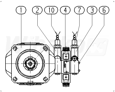 Pompa tłokowa osiowa o zmiennej objętości roboczej A10VS, obieg otwarty, ciśnienie nominalne 280 bar, ciśnienie maksymalne 350 bar. Seria 31. Wielkość nominalna 140 cm3. Ciśnieniowy sterownik hydrauliczny.