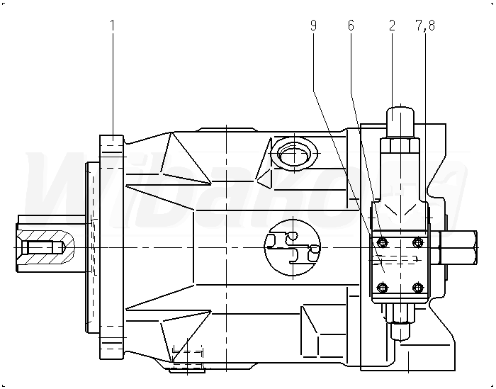Pompa tłokowa osiowa o zmiennej objętości roboczej A10VS, obieg otwarty, ciśnienie nominalne 280 bar, ciśnienie maksymalne 350 bar. Seria 31. Wielkość nominalna 140 cm3. Ciśnieniowy sterownik hydrauliczny.